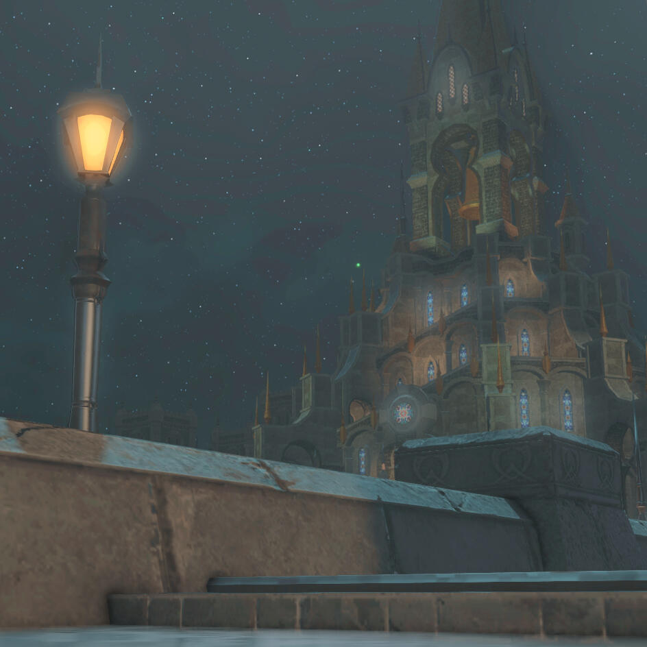 I eventually arrived at the root problem--how to mesh the red and gold Eastern decorations with the Amaurotine, which tends towards the green - what if the sky was red instead? The Final Days of Amaurot provided a lore-friendly, if somewhat morbid solution!