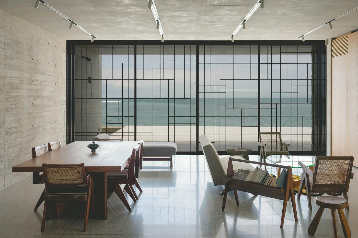 This apartment build is directly inspired by the newly-built home of Japanese producer Nigo (Tomoaki Nagao), as featured in the New York Times - namely in the construction of the central window (see below). I wanted to evoke the Pacific seascape with a setting sun in the west.